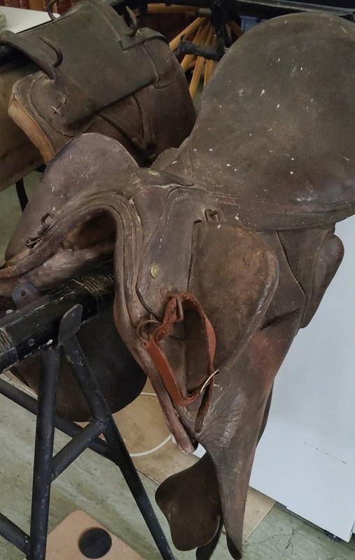 About this objectLeather horse riding saddle. No girth or stirrups.